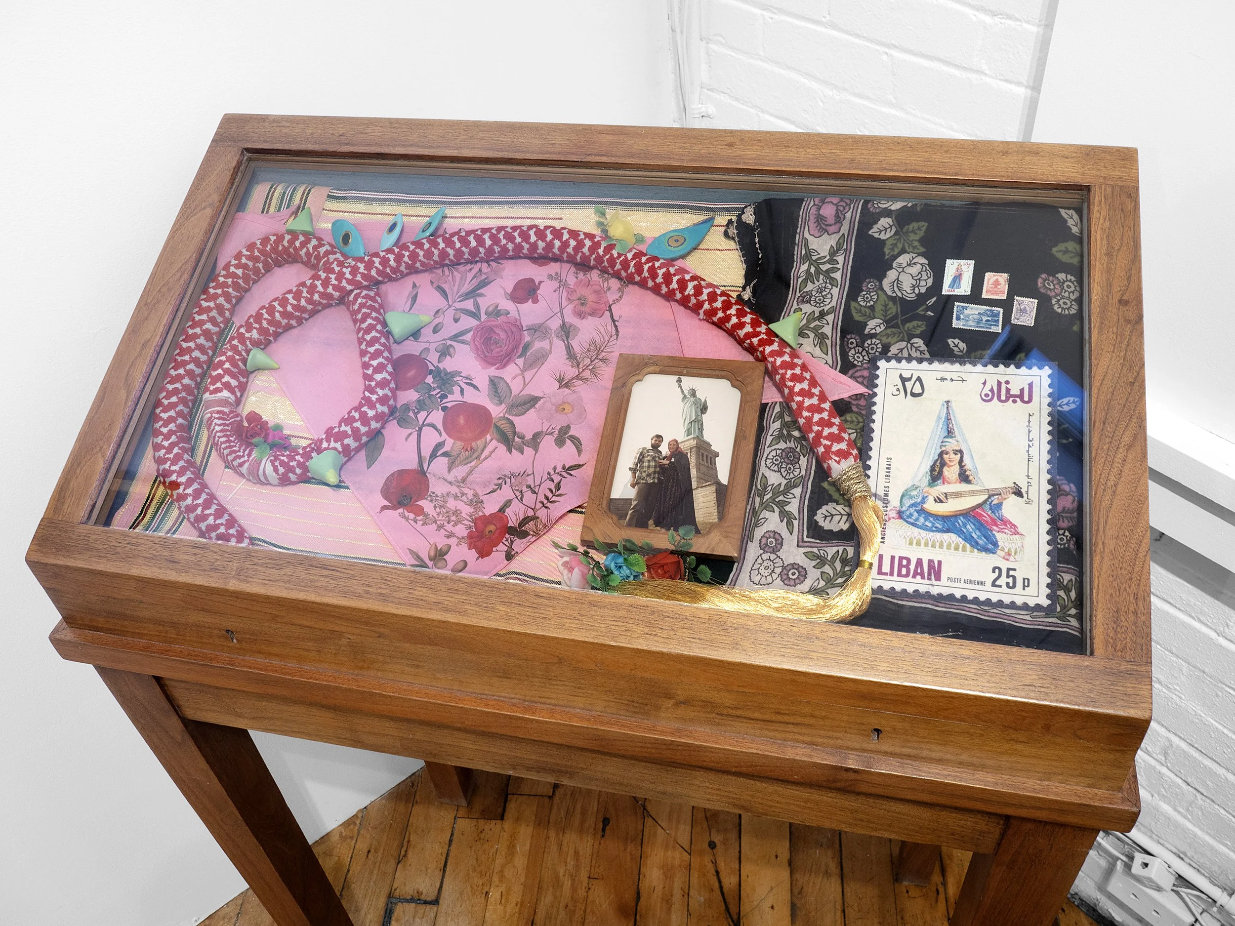Feda Eid is a Lebanese diaspora visual artist and photographer living in the occupied lands of Wampanoag and Massachusett People - so called Quincy, MA. Her work explores the expression of heritage, culture, identity and often tense but beautiful space between, what is said, what is felt, and and what is lost in translation. Using the everyday, passed down and reimagined as openings to ancestral wisdom and the Sacred. She captures these emotions through her bold use of color, textiles, adornment and pop culture linking the past and present. Feda is guided by her family's journey as Lebanese immigrants who fled the country's civil war in 1982 and her childhood growing up as an Arab and Muslim in the U.S.